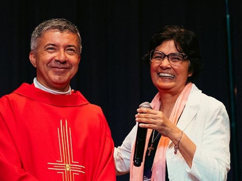 No período da tarde, o encontro seguiu com a reflexão “Projetar o futuro com esperança”, em celebração aos 10 anos da Associação Educacional Irmãs Salesianas de São Paulo. O momento reforçou a gratidão pela caminhada construída até aqui e renovou a esperança diante dos desafios e das possibilidades da educação contemporânea. A ocasião foi também marcada por um momento especial de transição na direção da AEISSP: a Irmã Teresa Cristina (Teca) encerra um ciclo de seis anos de dedicado e fecundo trabalho, deixando um legado de compromisso, amor e zelo pela missão educativa, enquanto a Irmã Adair Sberga assume a direção com alegria e espírito de serviço, dando continuidade a essa bela história, com confiança, esperança e renovado entusiasmo.